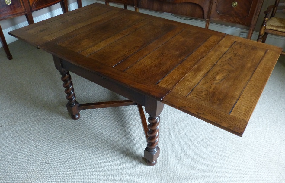 Solid Oak Barley Twist, Draw Leaf Table c.1920
