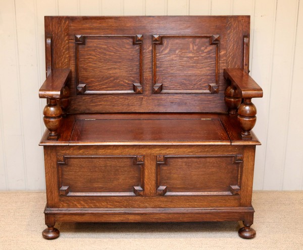 Solid Oak Monks Bench, England c.1920 (1 of 1)