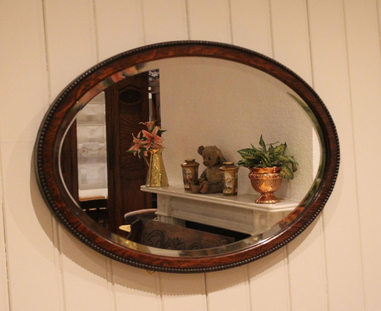 Solid oak oval mirror having a beaded edge with an inset bevel edge mirror. * Height51.5 cm / 20 1⁄2" * Width76.5 cm / 30 1⁄4" * Depth3 cm / 1 " Please note that not all items are on display in our showrooms and may be in our off-site store. If you wish to see specific items please notify us before visiting so that we can ensure the item(s) are available to view.