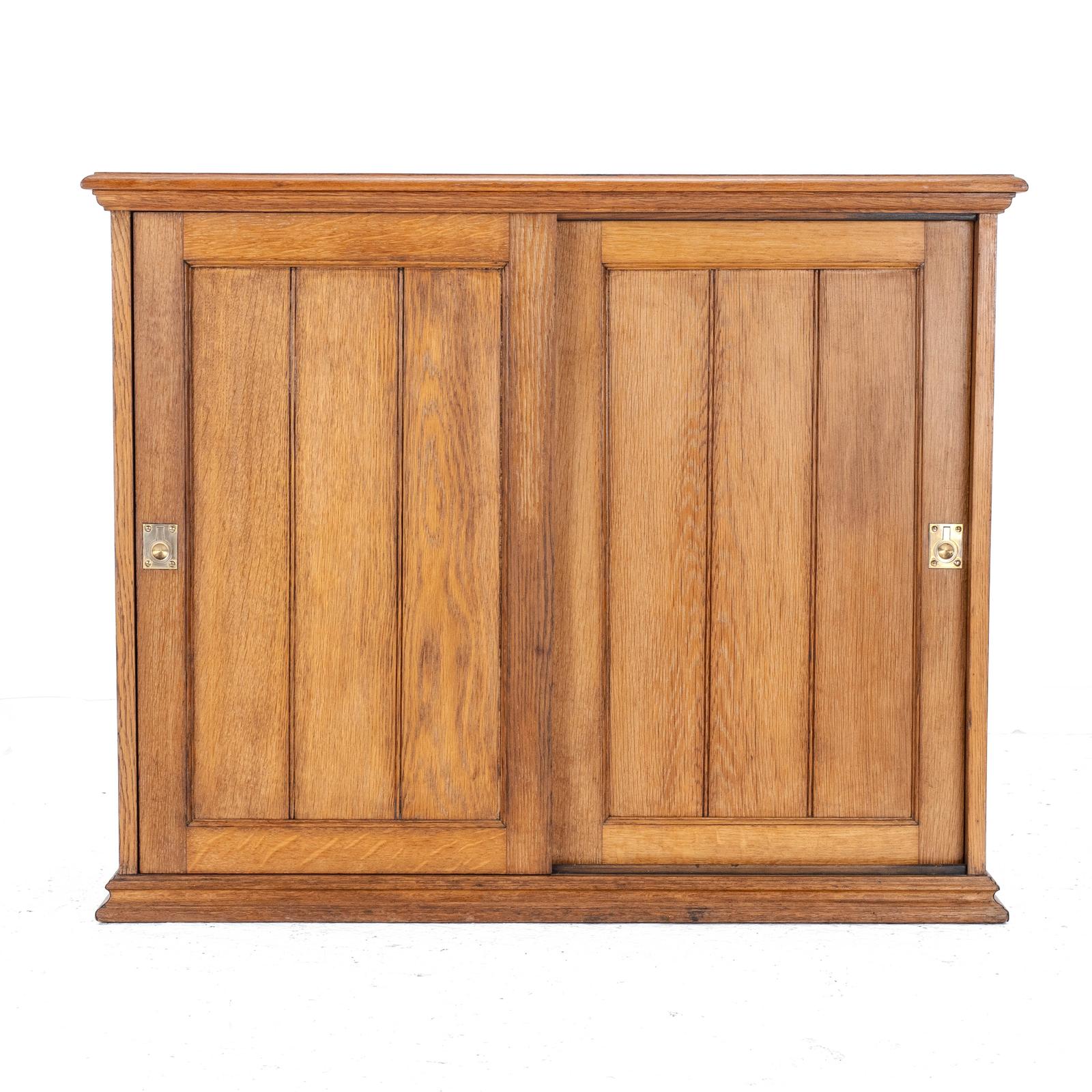 Solid Oak Sliding Panel Door Cabinet c.1930