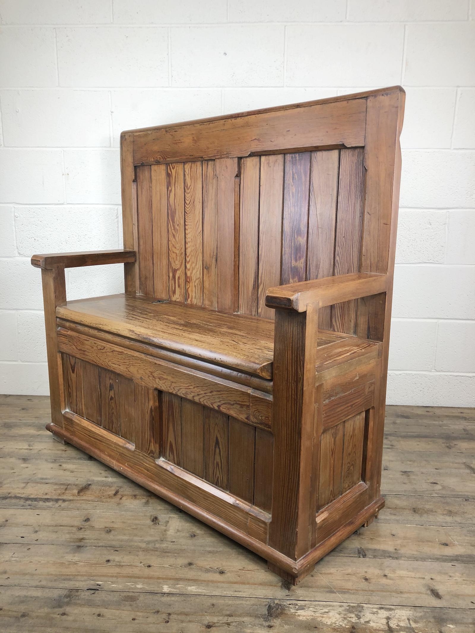 Solid Pitch Pine Panel Back Box Settle with Storage