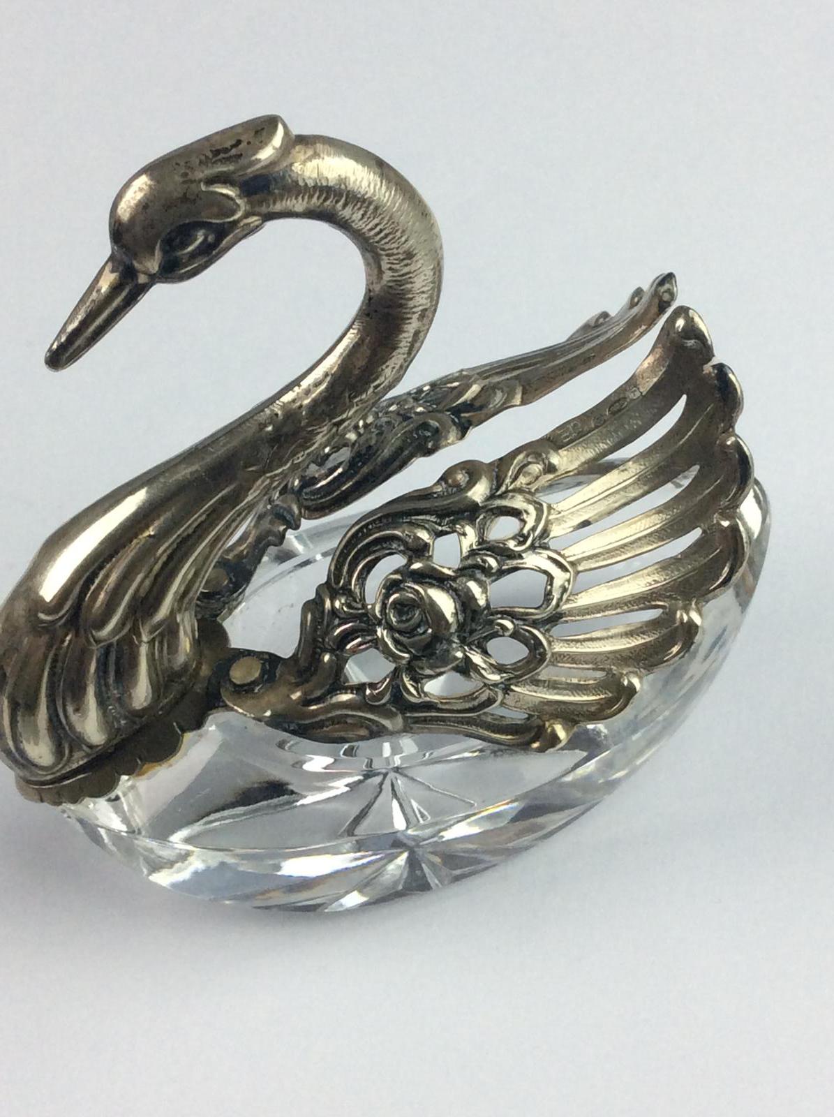 REF: Solid Silver and Glass Open Winged Swan Salt / LA313001