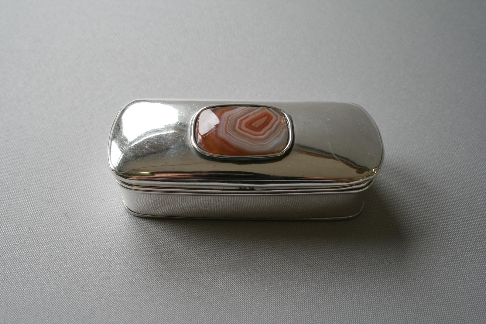 Solid Silver Box with Agate Decoration on Lid c.1902