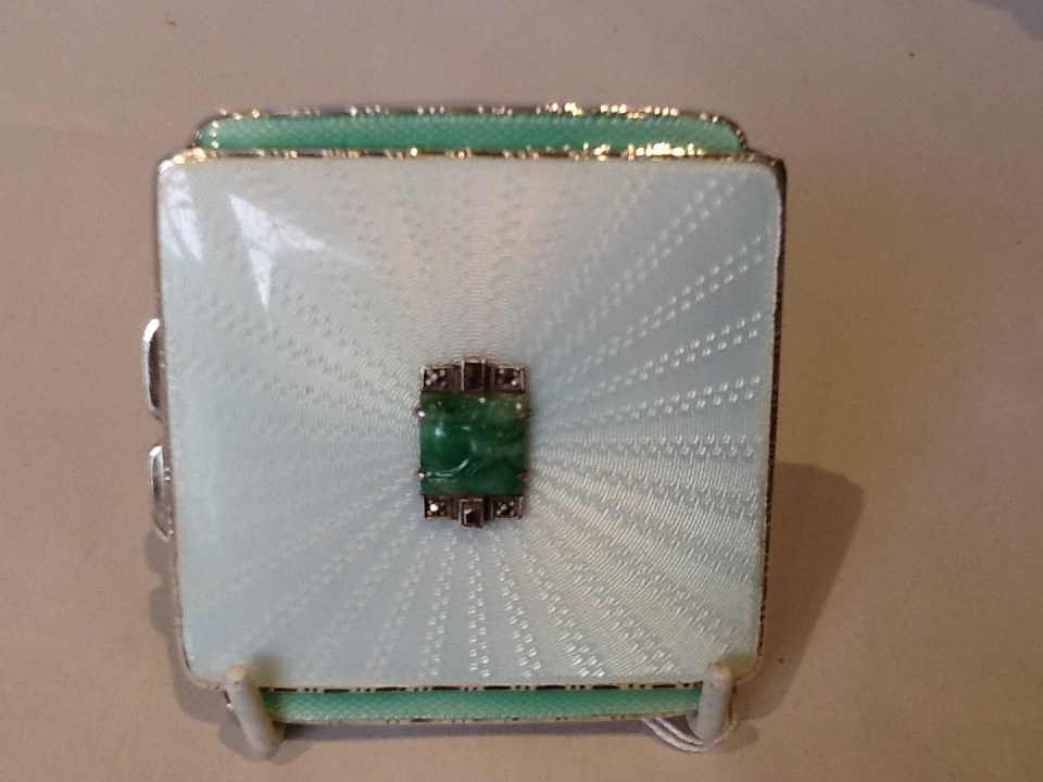 Solid Silver Enamel & Jade Compact