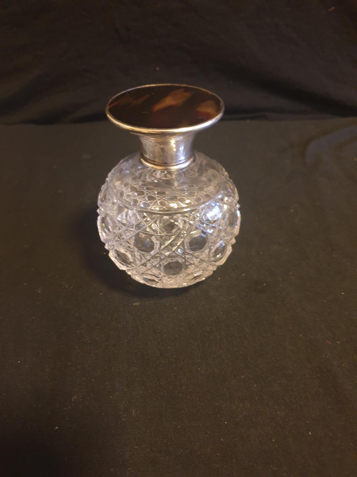 Solid Silver & Faux Tortoiseshell Topped Scent Bottle