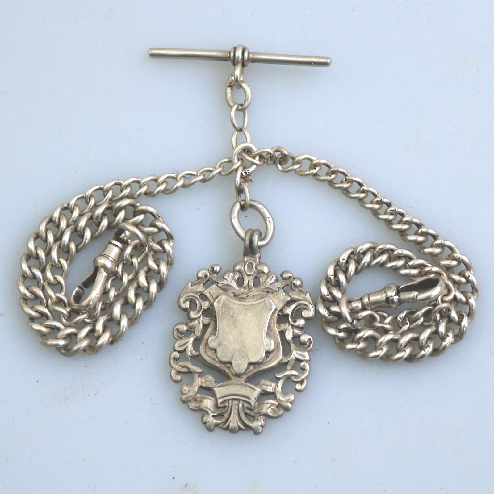 Solid Silver Graduating Double Watch Albert / Albertina 29g c.1924