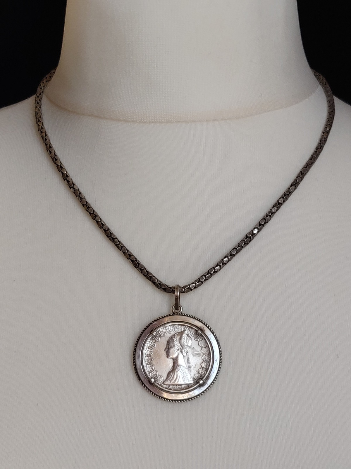 Solid Silver Necklace Antique Middle-Eastern Chain and Pendant with Italian Coin