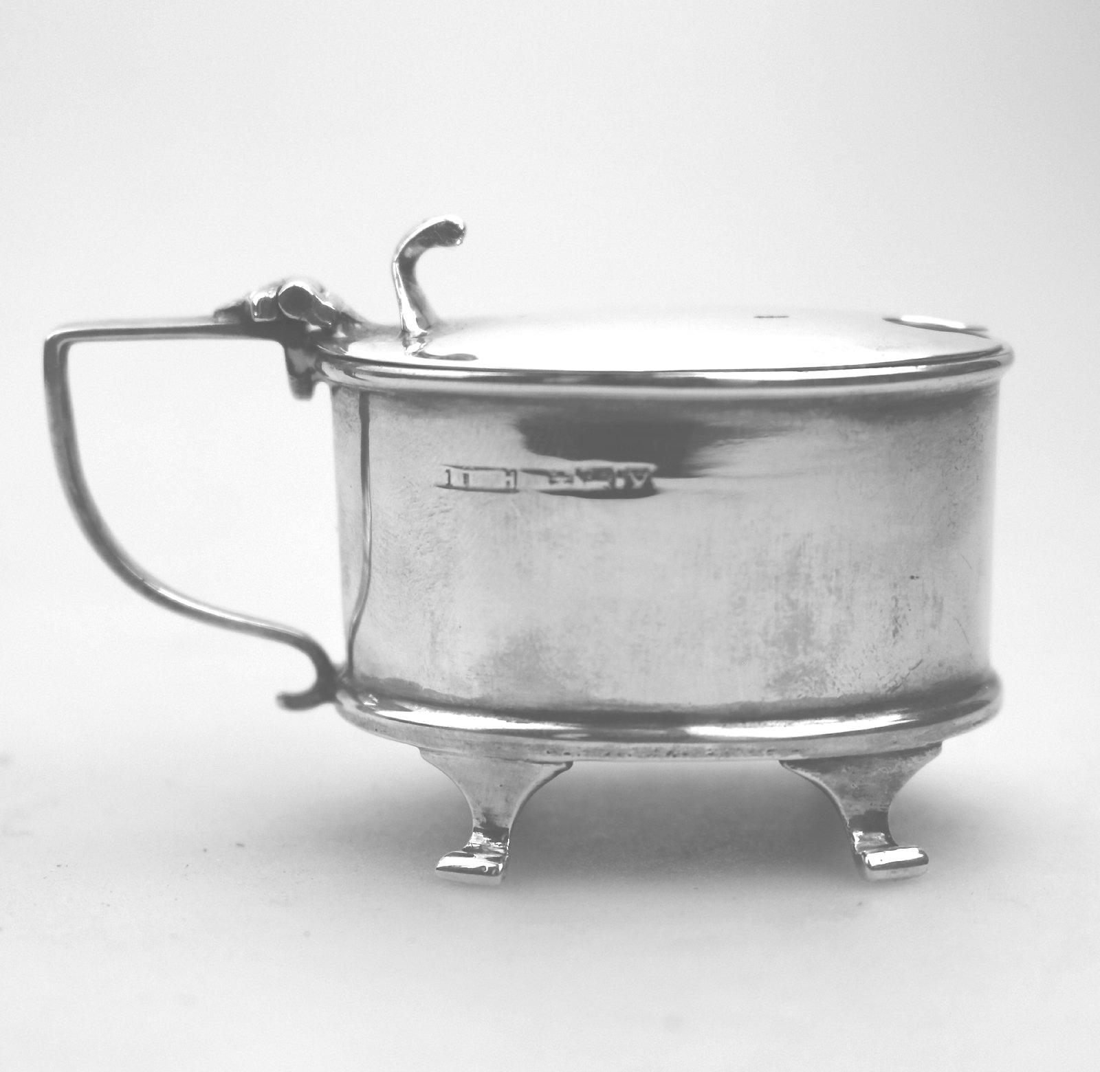 Solid Silver Oval Mustard & Liner Birmingham c.1920