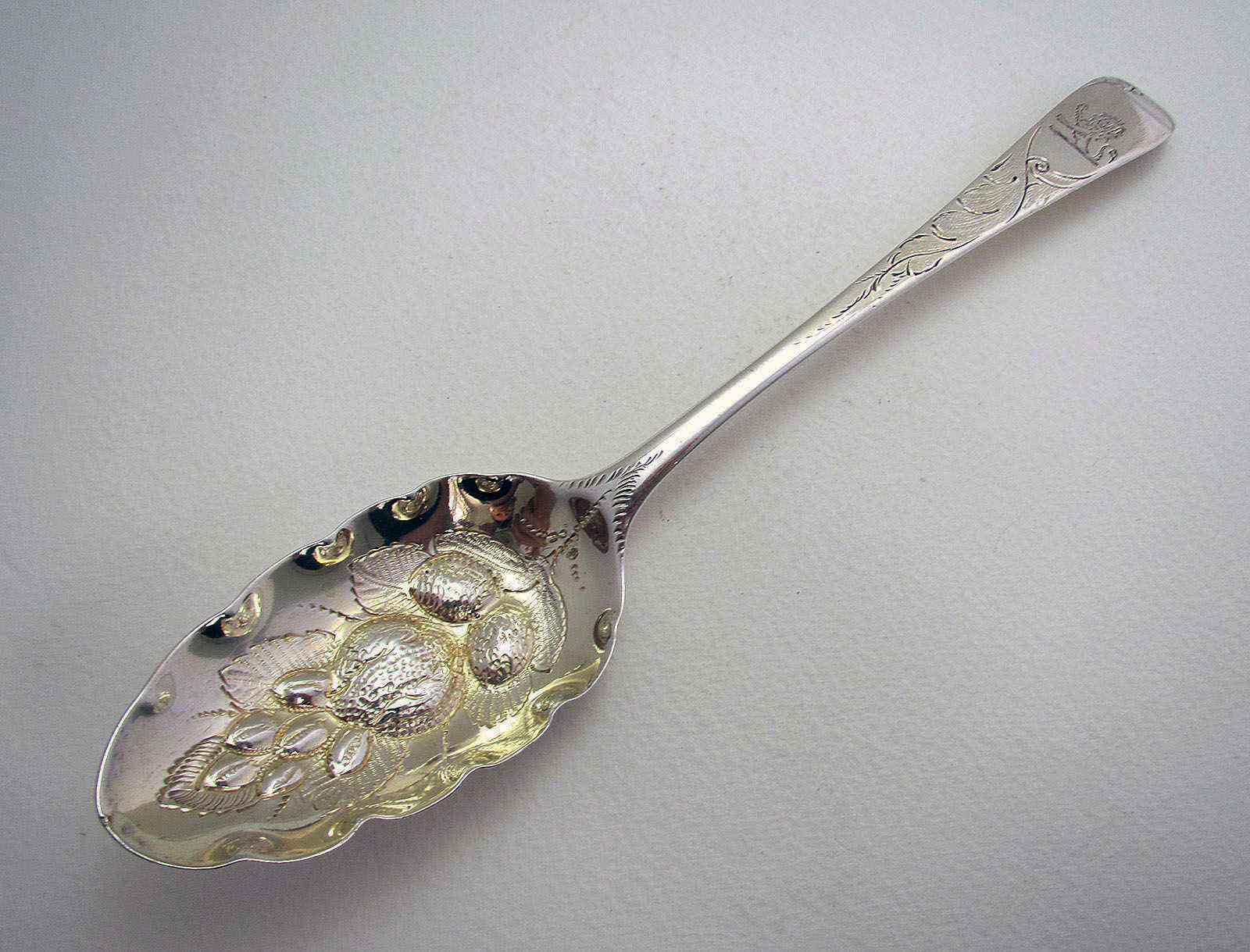 Solid Sterling Silver English George III Hallmarked Antique Table Fruit Berry Serving Spoon C.1760