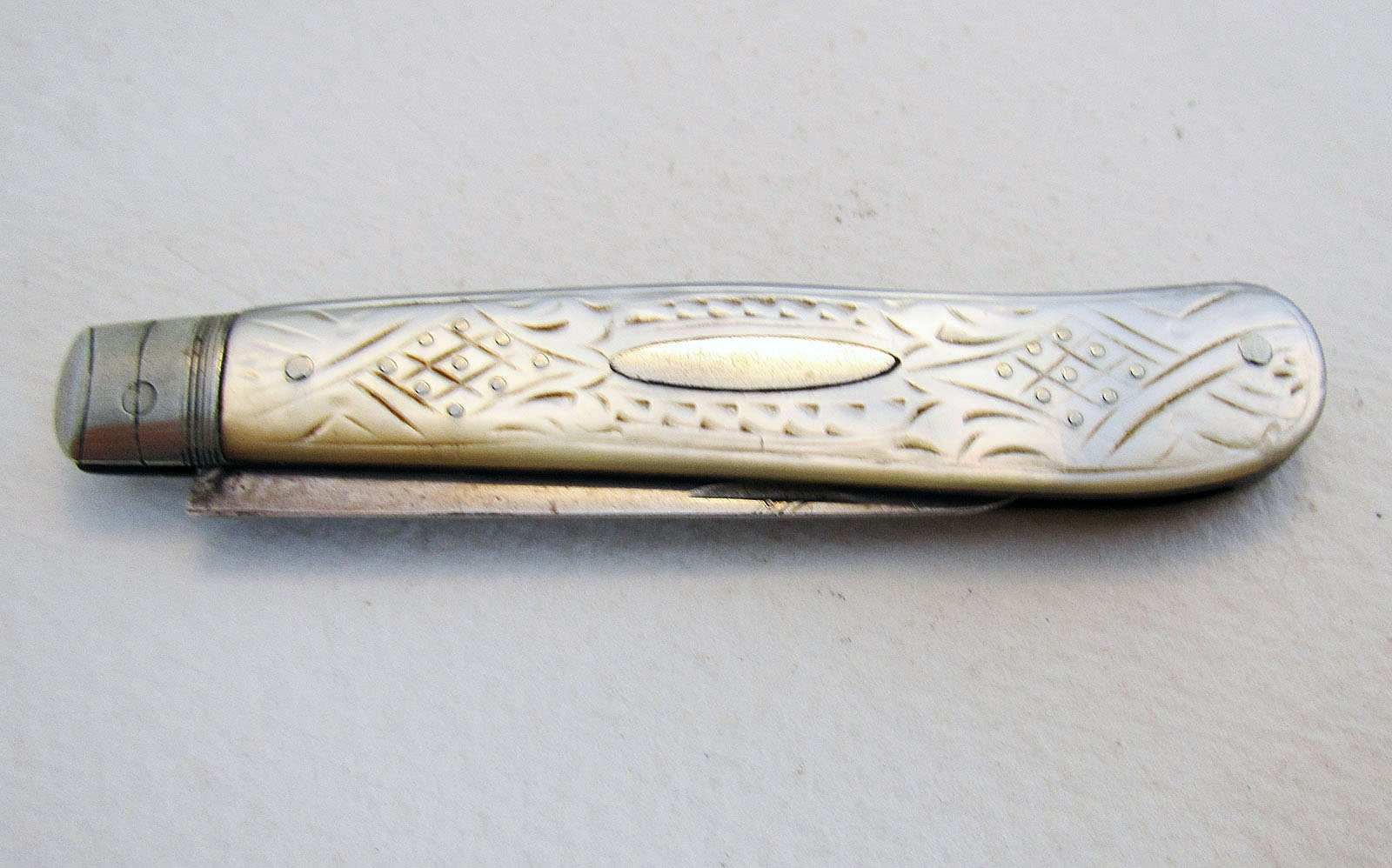 Solid Sterling Silver & Mother of Pearl Mop English Sheffield Hallmarked Folding Pocket Fruit Penknife 1911