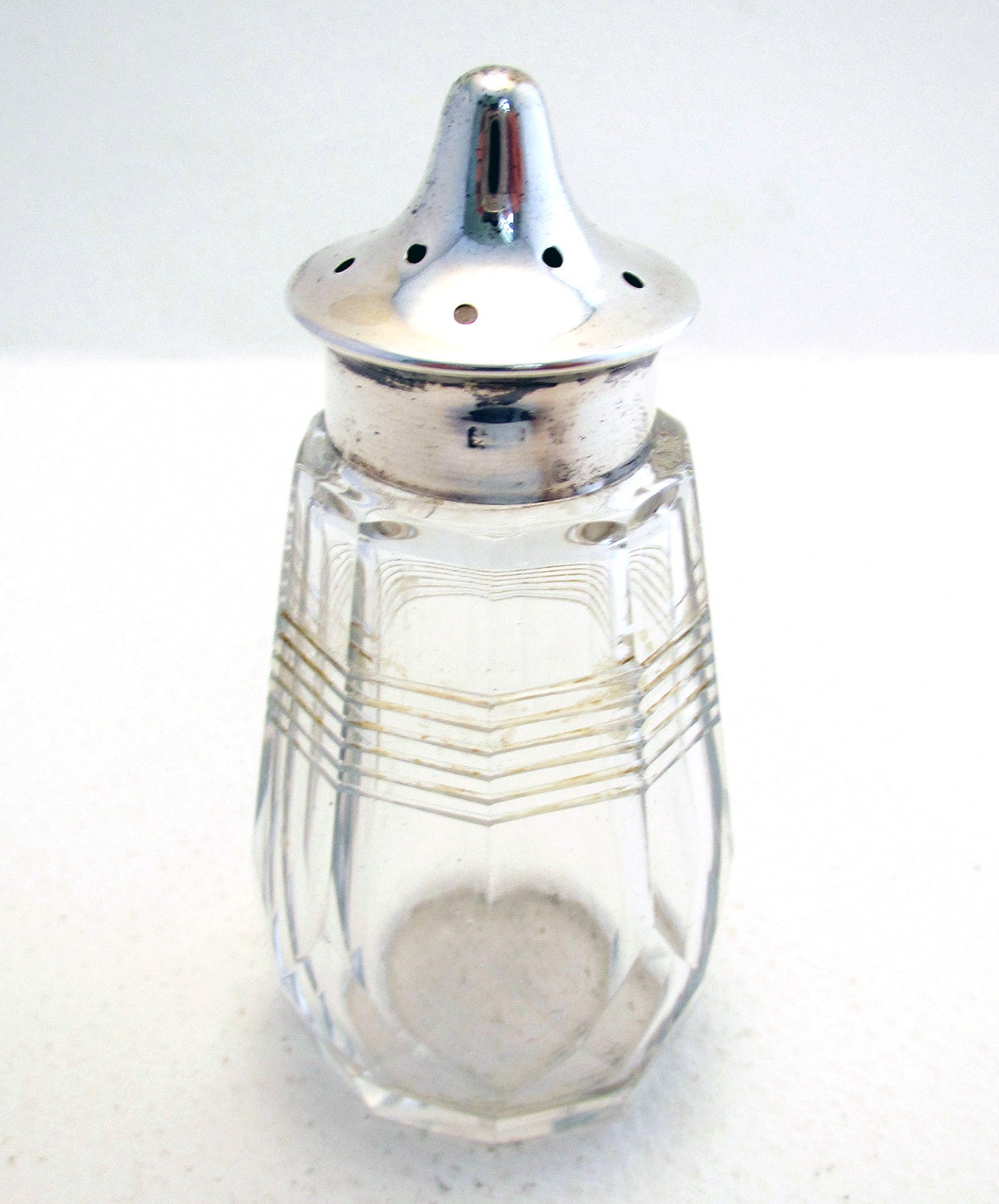 Solid Sterling Silver Top Lidded & Cut Glass Pepper Pot 1922