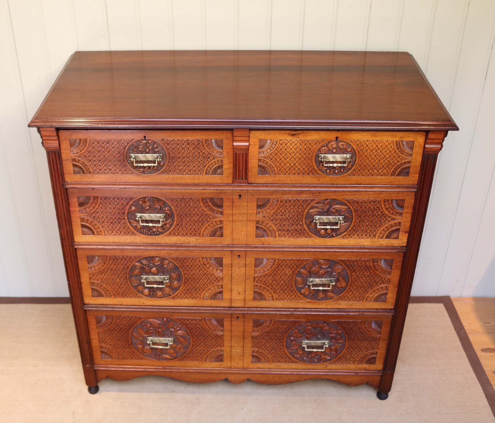 Solid Walnut Aesthetic Movement Chest of Drawers C.1890 (1 of 1)