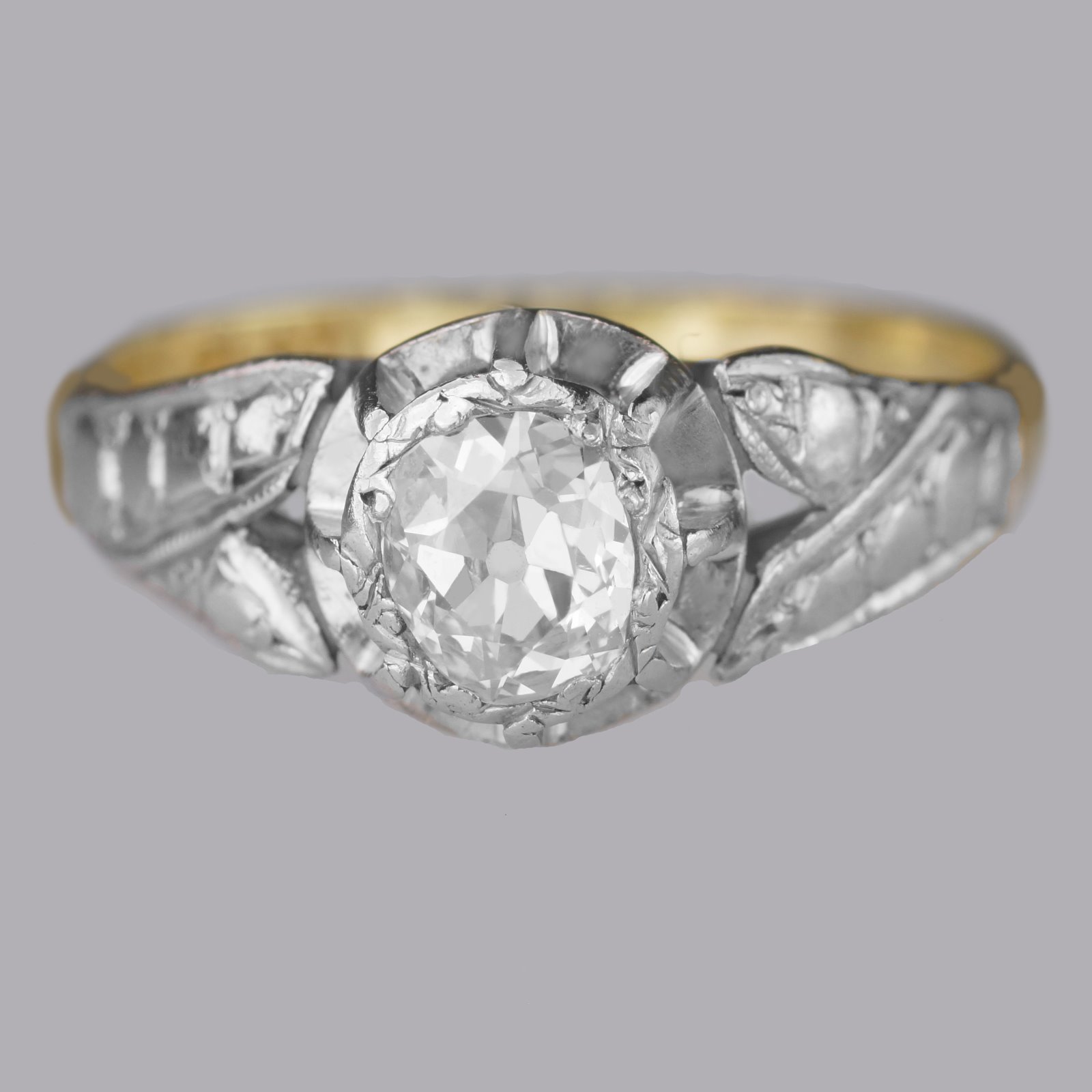 Solitaire Old Cut Diamond Ring 18ct Gold & Plat 1920s Engagement Ring