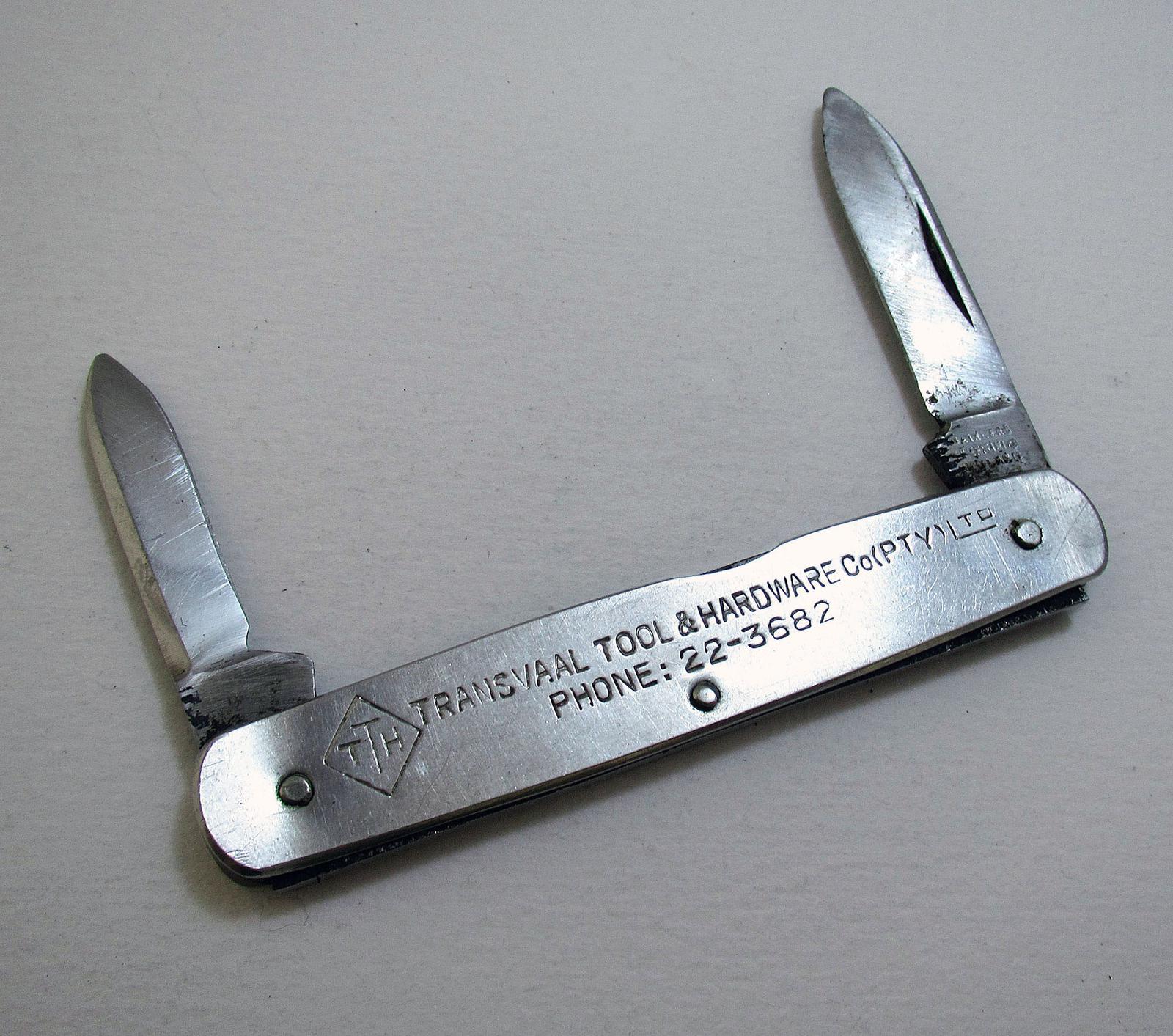 South Africa Transvaal Tool & Hardware 1950s Vintage Stainless Steel Double-bladed Pocket Advertising Folding Knife