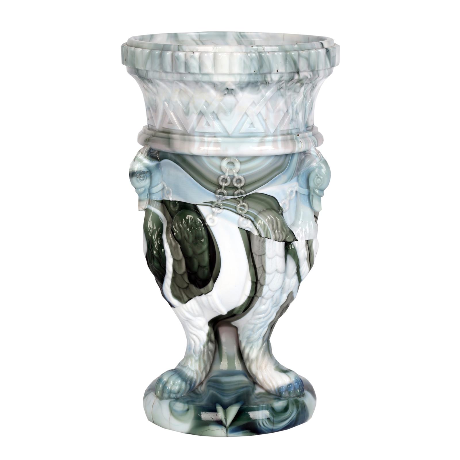 Sowerby / Edward Moore Marbled Slag Glass Gryphon Vase c.1880