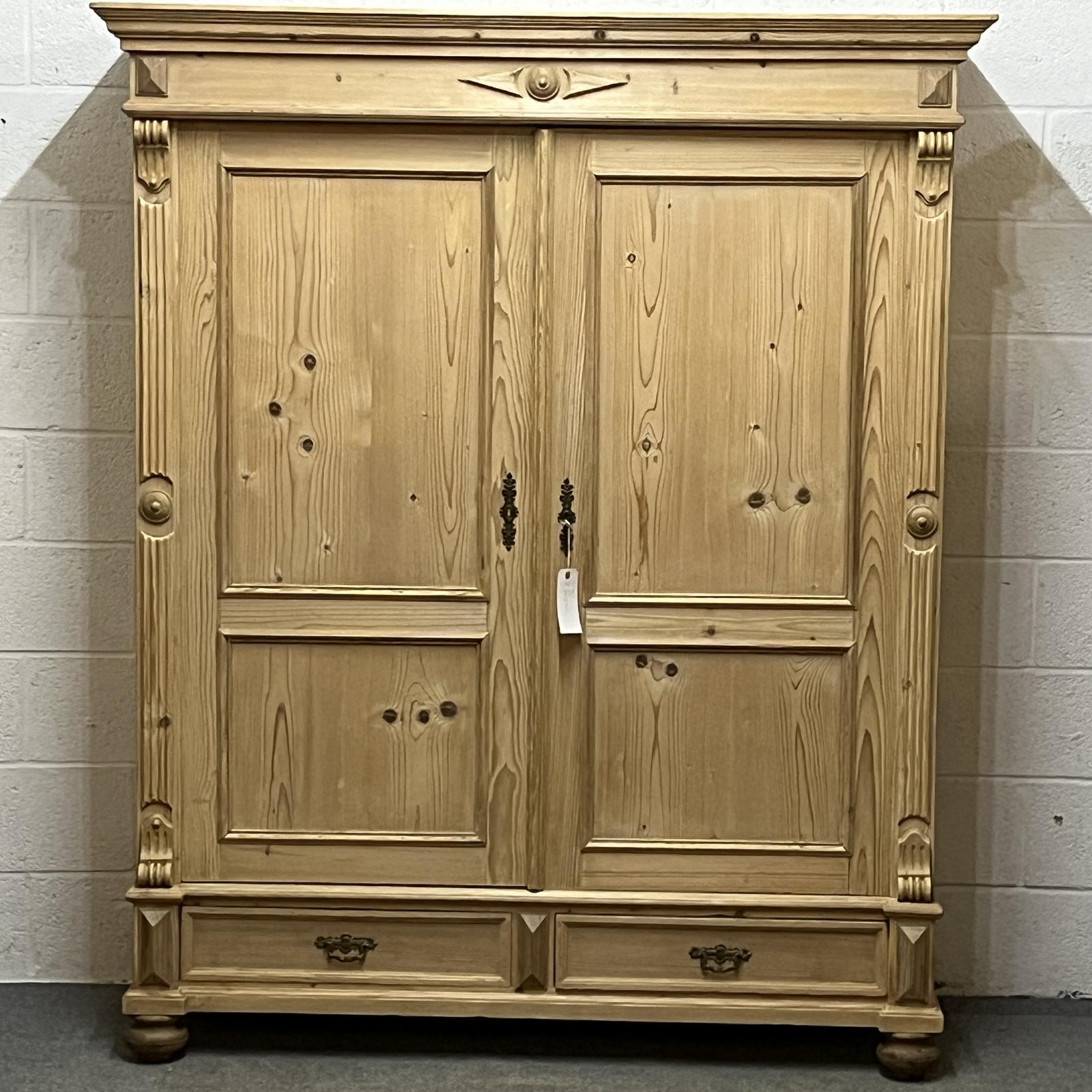 Spacious Double Old Pine Wardrobe with Lower Drawer