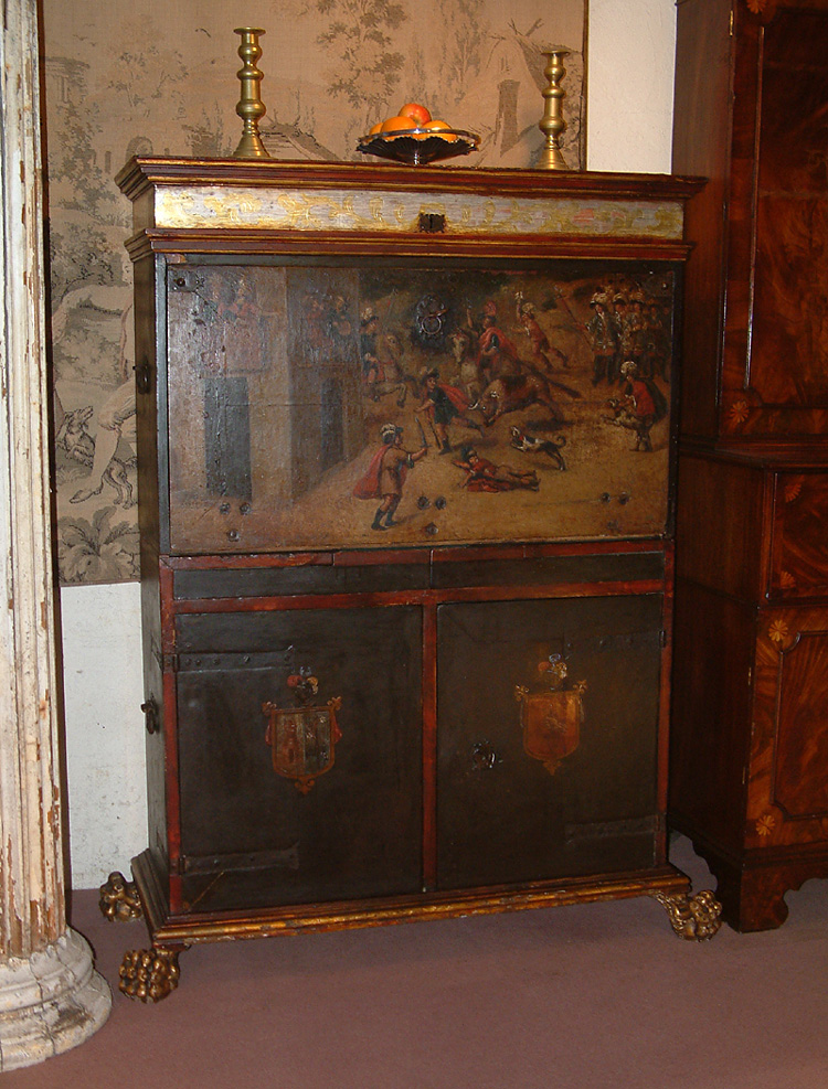 Spanish 17th Century Painted, Gilt, Vargueno, Escritoire Cabinet C.1700