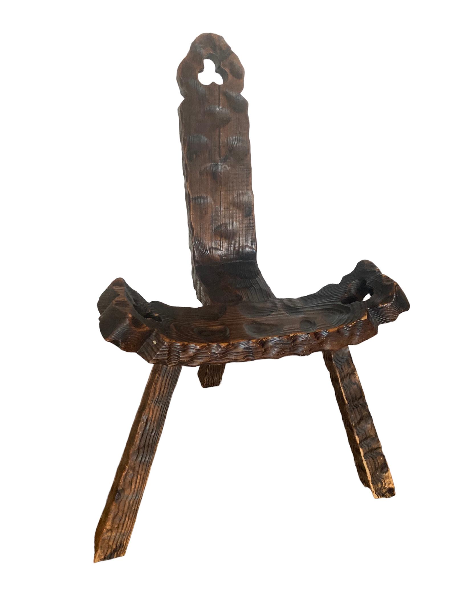 Spanish Brutalist or Primitve Mid Century Tri Legged Chair