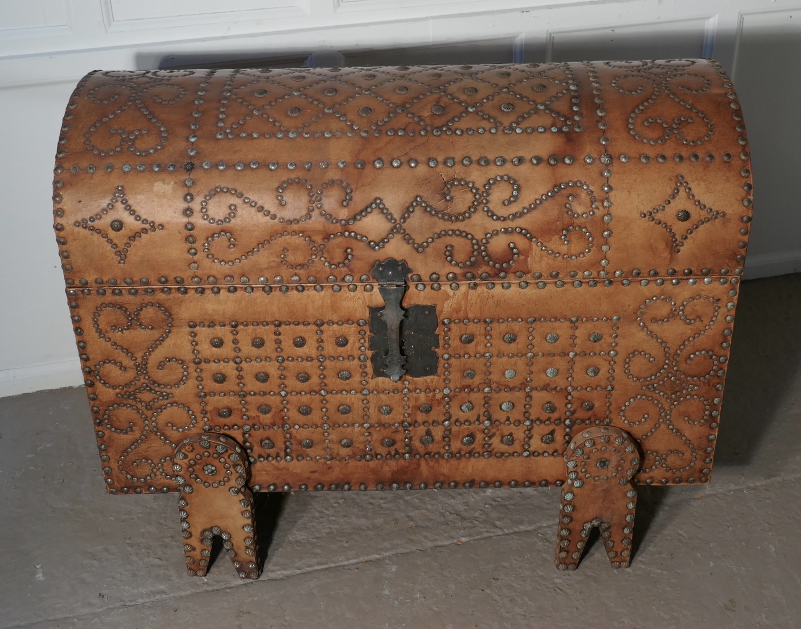 Spanish Dome Top Leather Brass Studded Marriage Chest or Travel Trunk