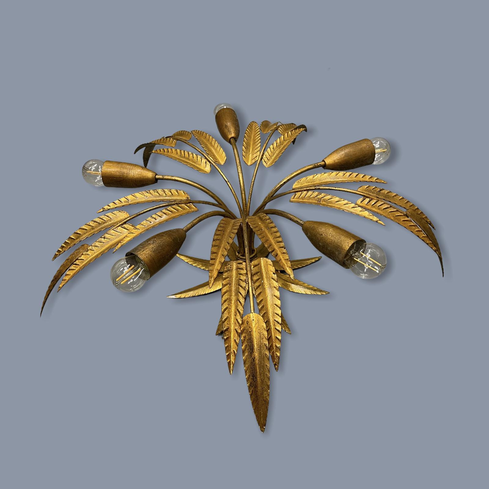 Spanish Ferro Art Gilt Palm Ceiling Light
