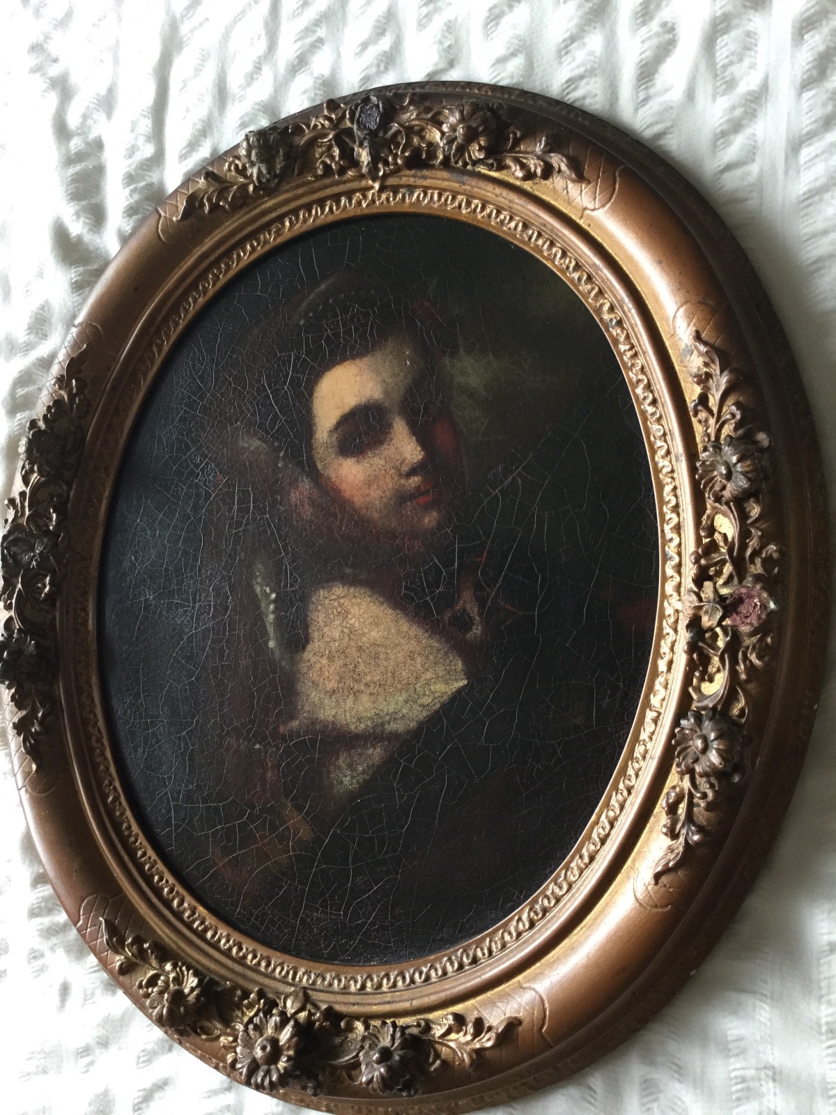 Spanish School, Oil On Tin Panel Portrait of a Senorita
