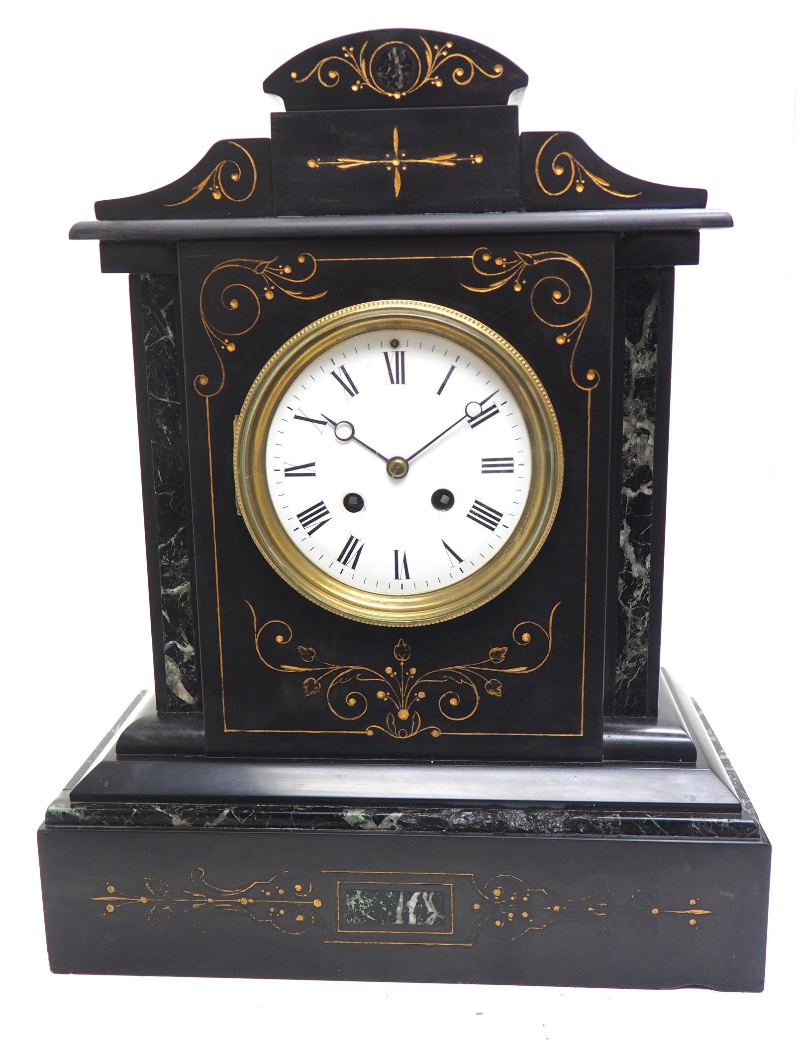 Special French 8-day Slate Mantel Clock – Good Striking Clock with Gilt & Marble Inlay
