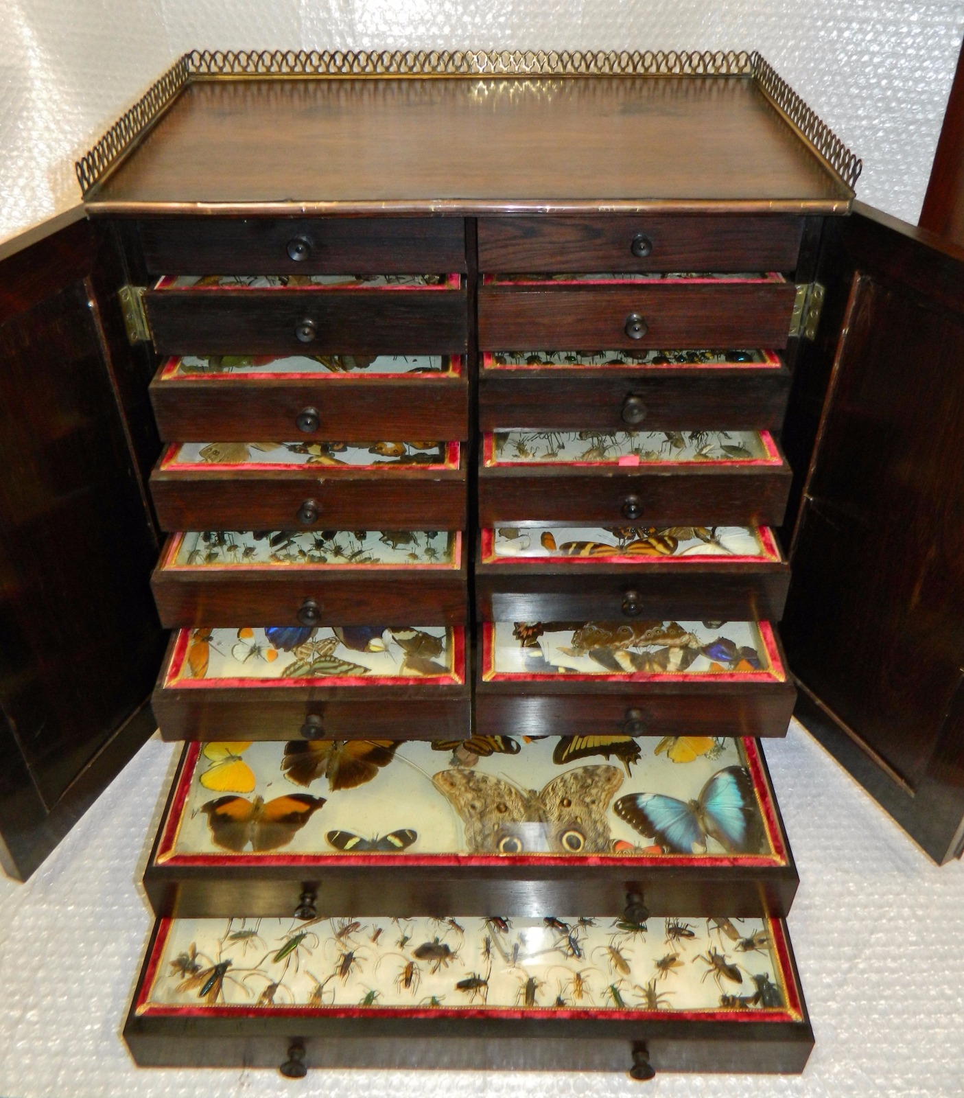 Specimen / Collectors Cabinet with Butterflies, Beetles Etc