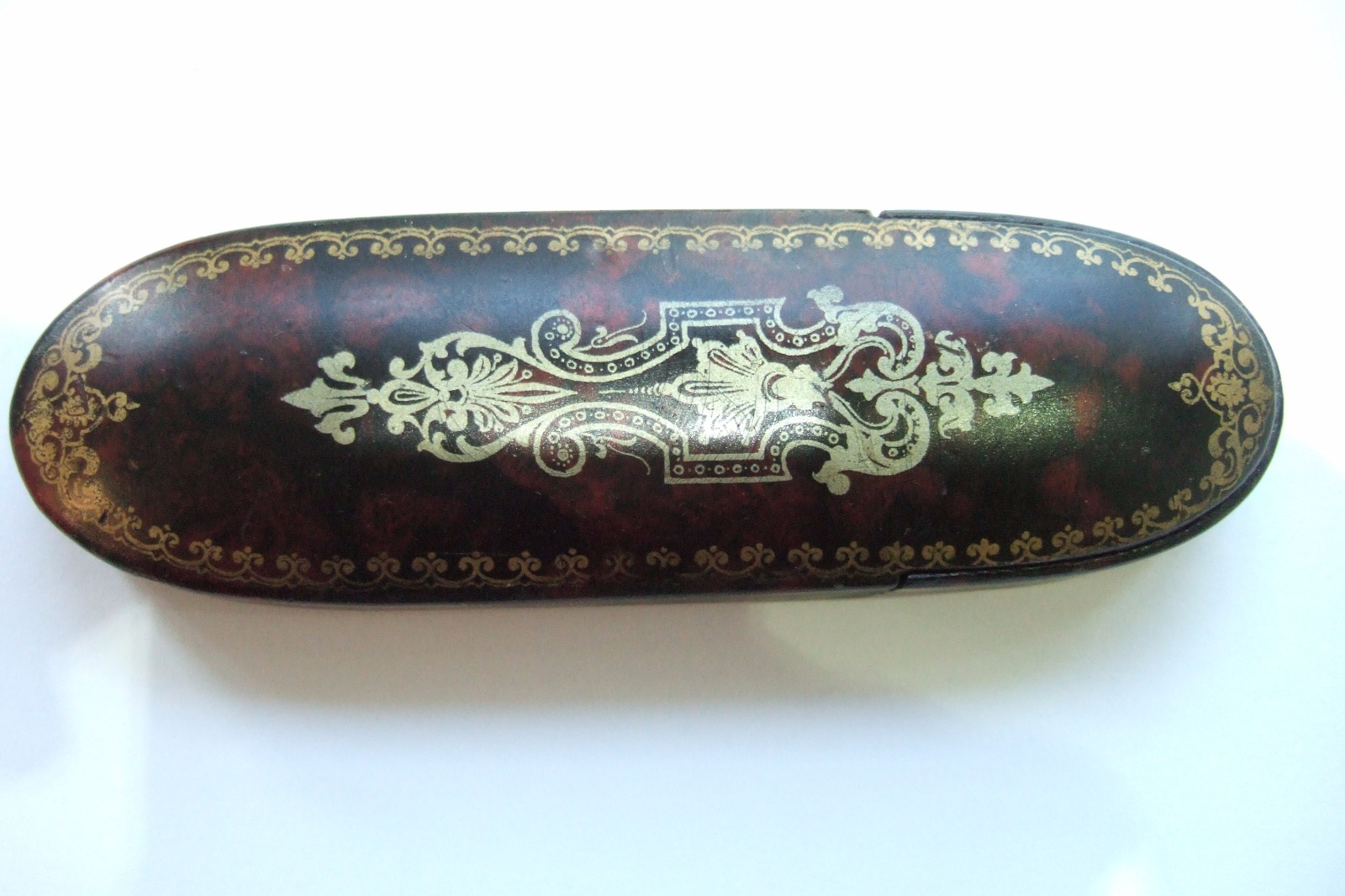Spectacles Case in Papier-Mache with Tortoiseshell Effect Paintwork & Gilded Design C.1900