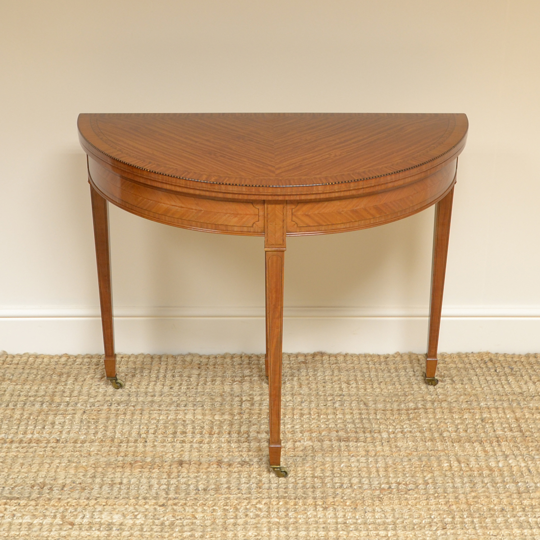 Spectacular Demi Lune Satinwood Victorian Antique Games Table / Console Table