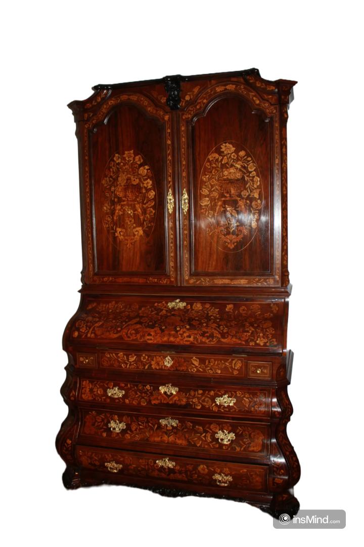 Spectacular Dutch Trumeau Cupboard, Early 19th Century, Richly Inlaid