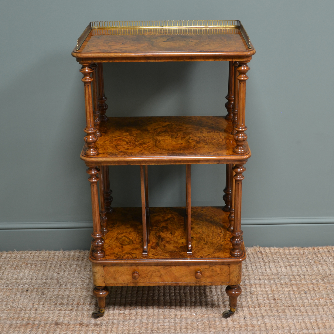 Spectacular Figured Walnut Antique Canterbury Whatnot