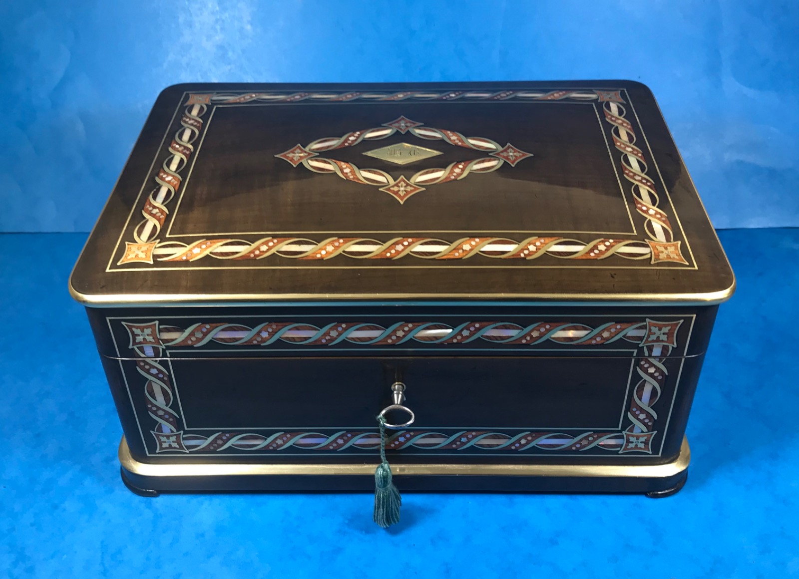 Spectacular French Ebonised Fruitwood Jewellery Box with Superb Inlay