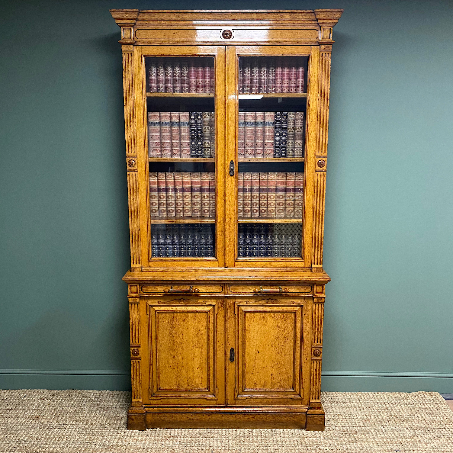 Spectacular Gillows Golden Oak Antique Glazed Bookcase on Cupboard