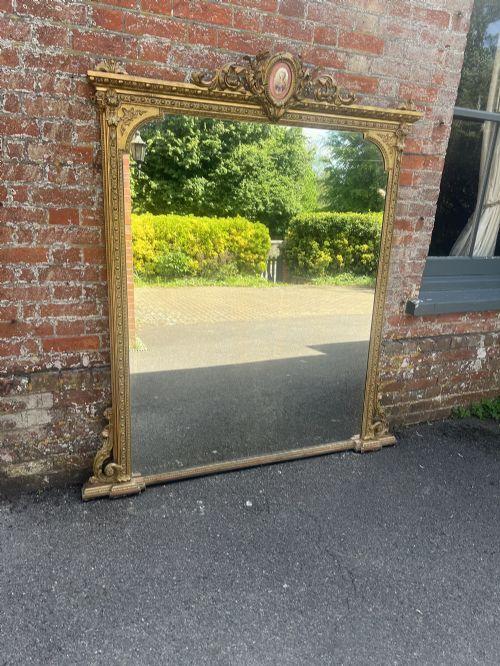 Spectacular Large Antique English 19th Century Carved Wood & Gesso Original Gilt Overmantle Mirror