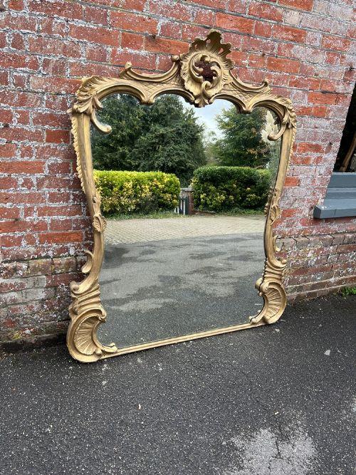 Spectacular Large Antique English 19th Century Carved Wood & Gesso Original Gilt Shaped Overmantle Mirror