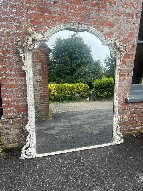 Spectacular Large Antique English 19th Century Carved Wood & Gesso Shaped Top Mirror