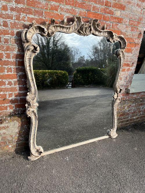 Spectacular Large Antique English 19th Century Shaped Top Carved Wood Painted Overmantle Mirror