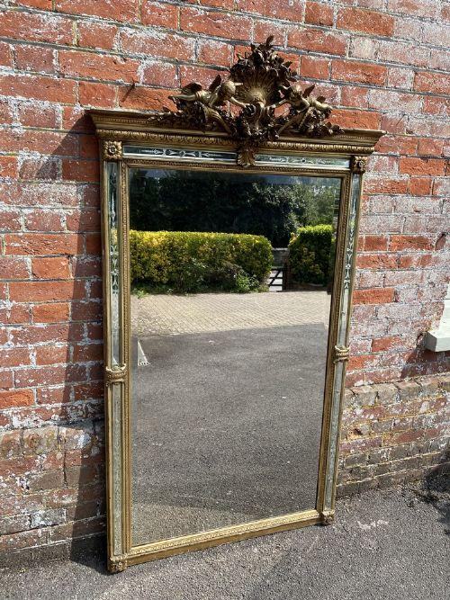 Spectacular Large Antique French 19th Century Carved Wood & Gesso Original Gilt Etched Mirrored Framed Mirror