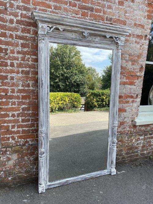Spectacular Large Antique French 19th Century Carved Wood Painted Column Framed Mirror