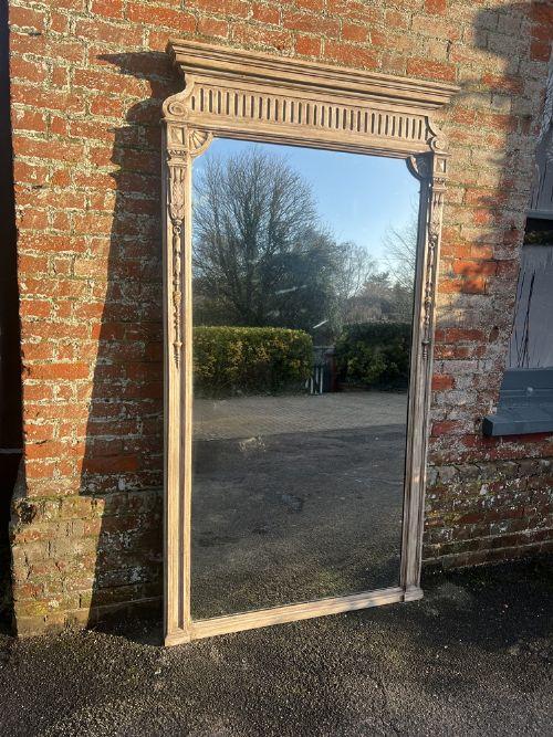 Spectacular Large Antique French 19th Century Carved Wood Painted Ribbed Mirror