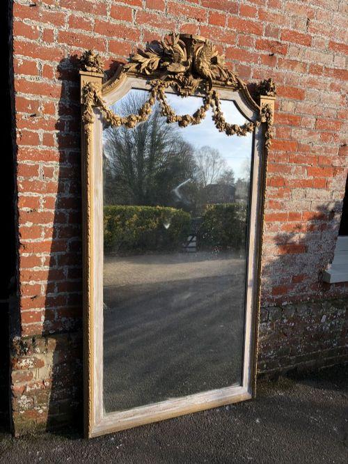 Spectacular Large Antique French Carved Wood & Gesso Orignal Gilt & Painted Mirror
