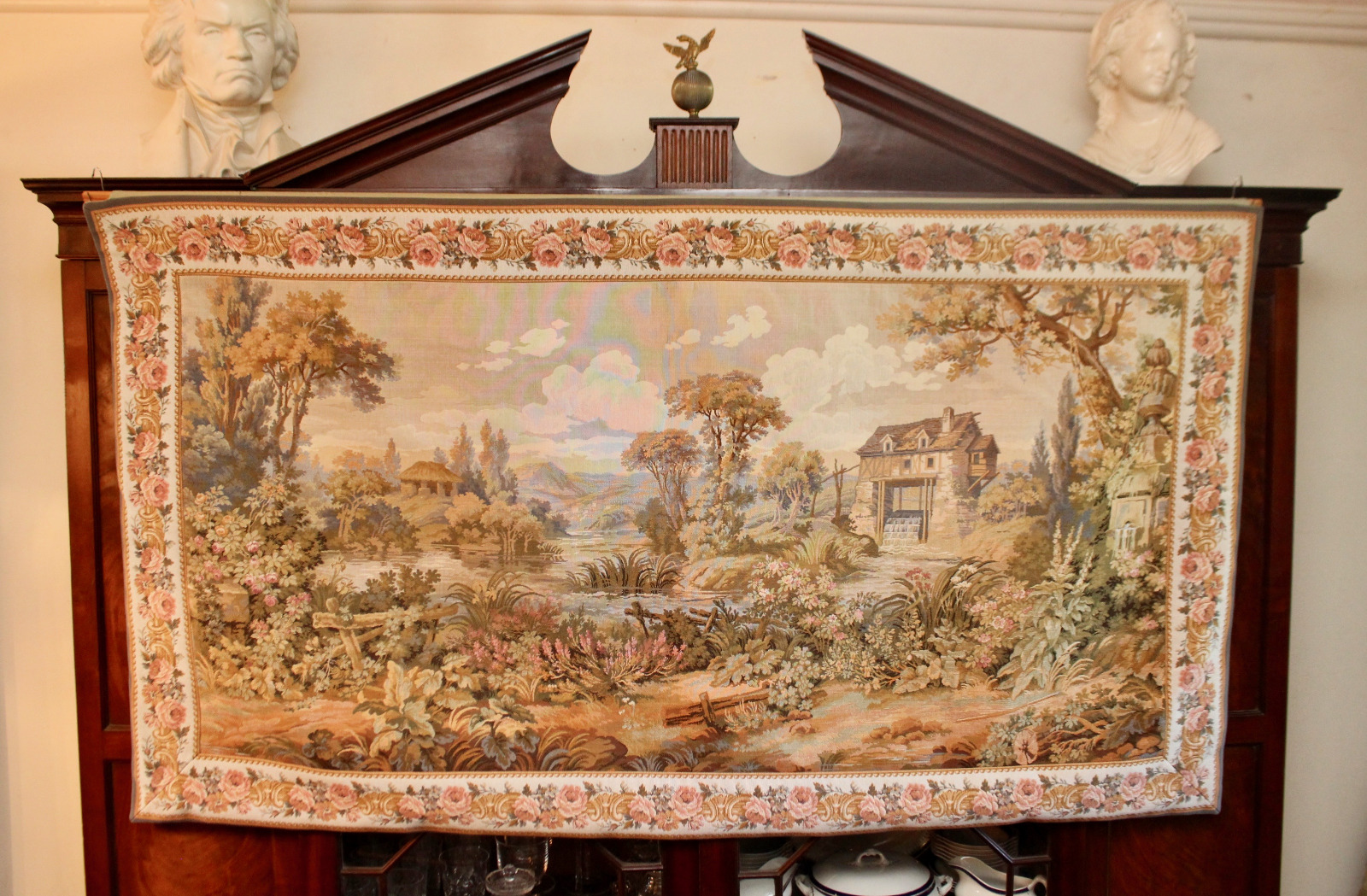 Spectacular Large Aubusson Verdure Wall Tapestry 6' X 7' Point Genre Gobelins