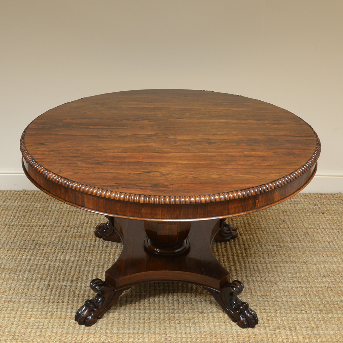 Spectacular Large William IV Figured Rosewood Antique Circular Dining Table