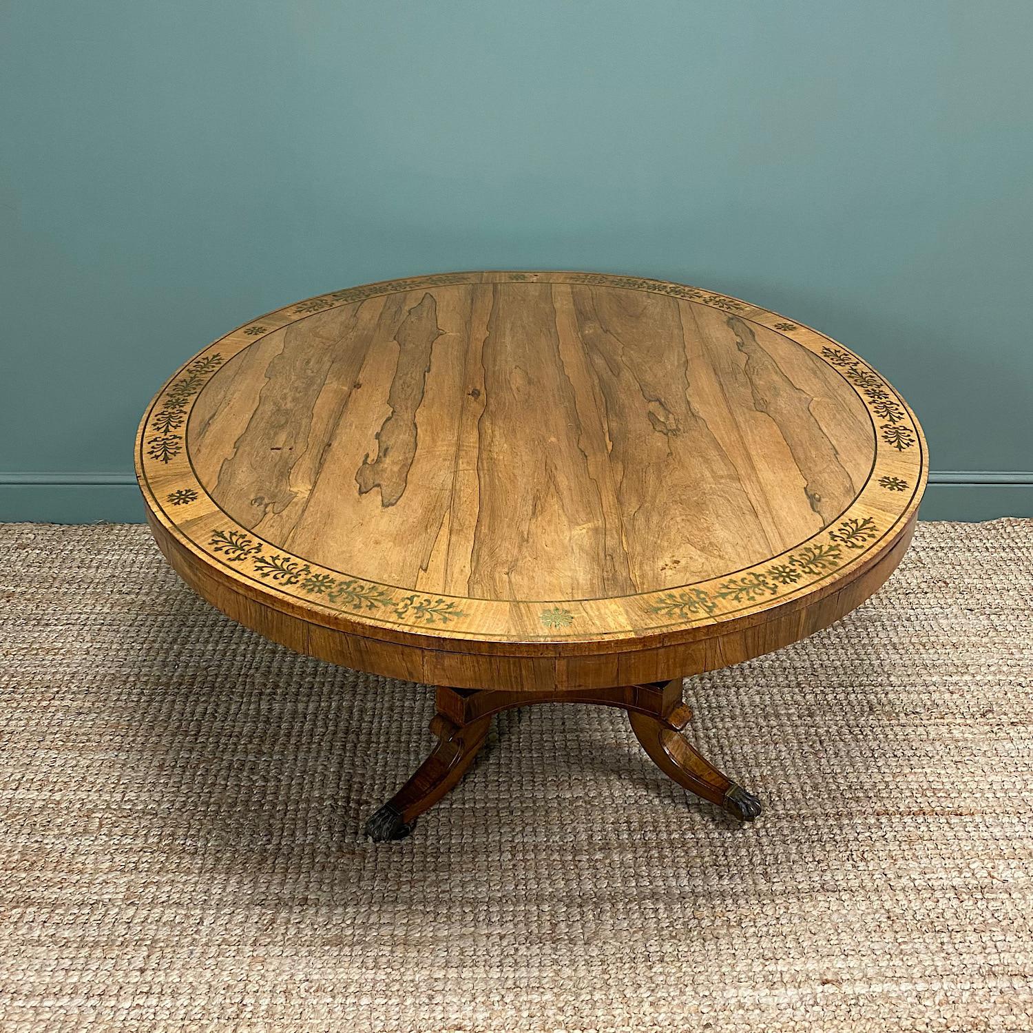 Spectacular Mellow Rosewood and Brass Inlaid Regency Circular Centre Table