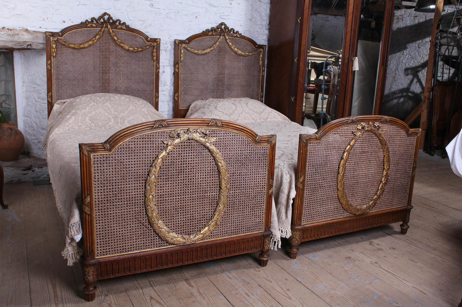 Spectacular Pair of Caned Empire Style Large Single Beds