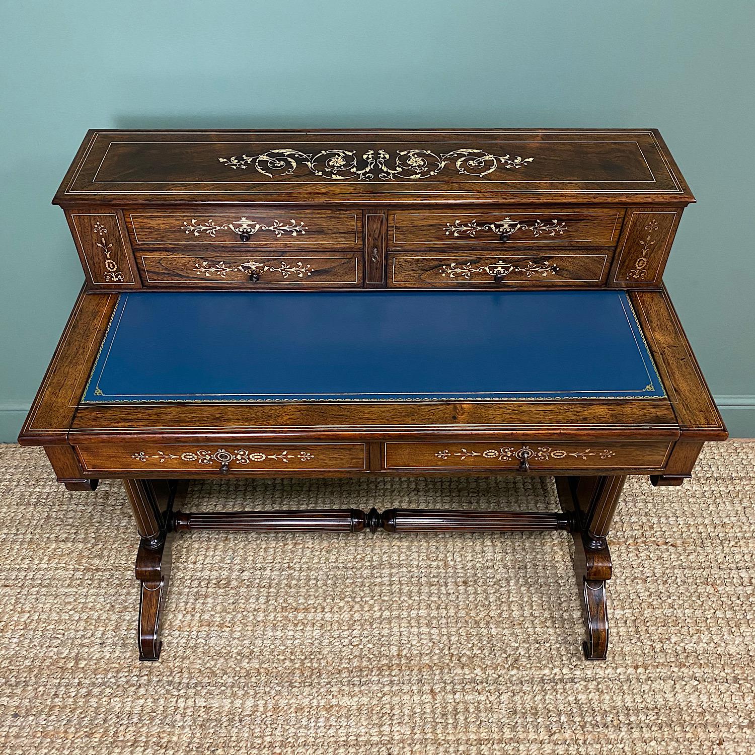 Spectacular Quality Rosewood & Brass Inlaid Antique Writing Table