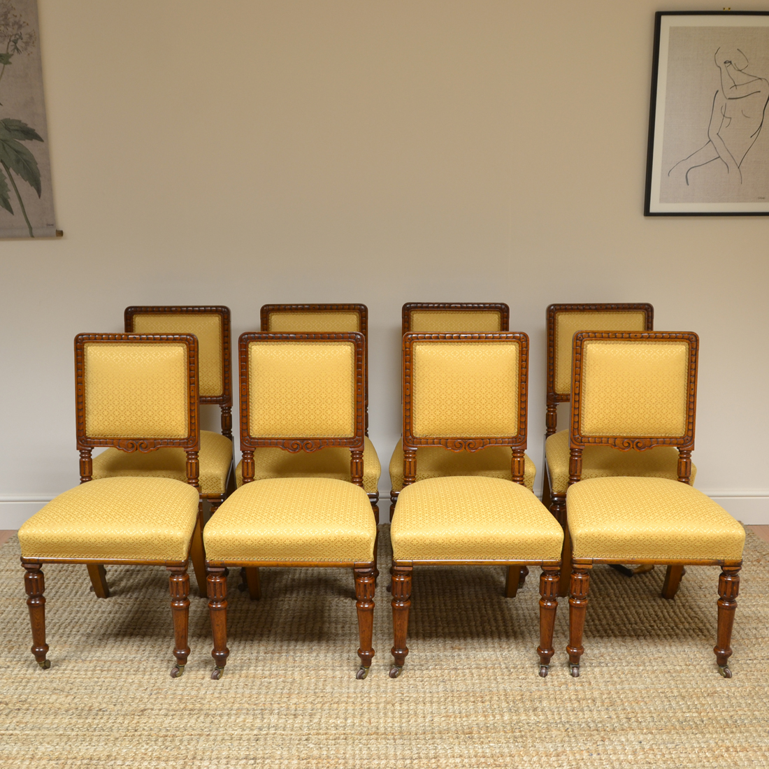 Spectacular Set of 8 Victorian Solid Oak Antique Dining Chairs
