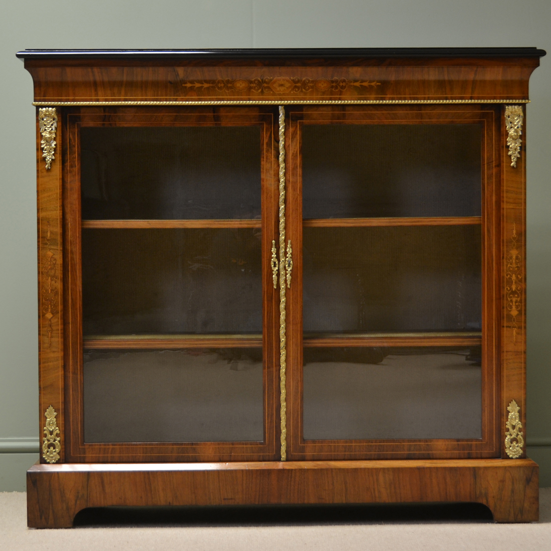 Spectacular Victorian Figured Walnut Inlaid Antique Pier Cabinet