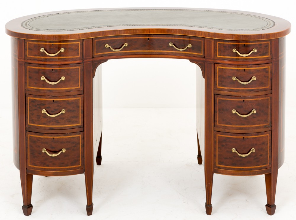 Spectacular Victorian Plum Pudding Mahogany Kidney Shaped Desk (1 of 1)