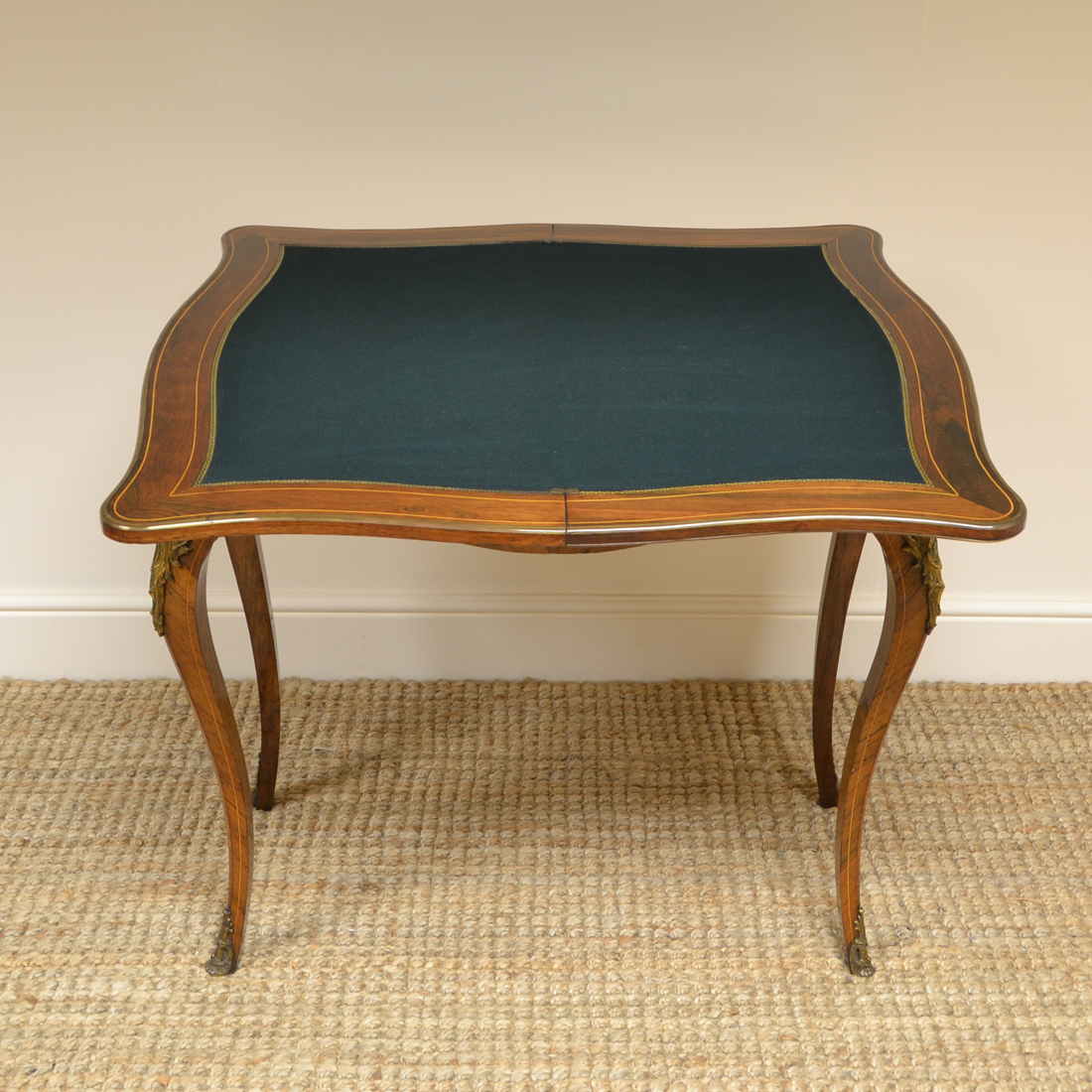 Spectacular Walnut Edwardian Inlaid Antique Card Table / Side Table with Decorative Ormolu